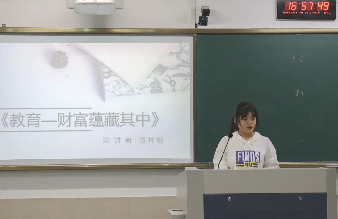 19小教2班的黄林敏分享的书是《教育——财富蕴藏其中》,这本书是国际21世纪教育委员会向联合国教科文组织提交的报告。她通过一个简洁明了的结构图向大家介绍了这本书的大致内容。在未来的教育发展中,不管是终身教育,还是教师的作用,都会被越发关注到,教育专业的我们同样要对教育有一个清晰的认知。