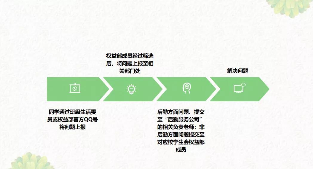学院权益部近日参加了学校信建处座谈会,在会后通过班级生活委员收集校园网故障名单,并向相关部门老师反馈。截至目前,所有上报过的故障问题都已经得到解决。同时,院权益部还将一些普遍性问题进行汇总,整理成文档形式,由生活委员转发到班群进行科普宣传。在之后的工作中,院权益部会积极聆听每一位同学的合理需求,真正做到全心全意为同学服务。