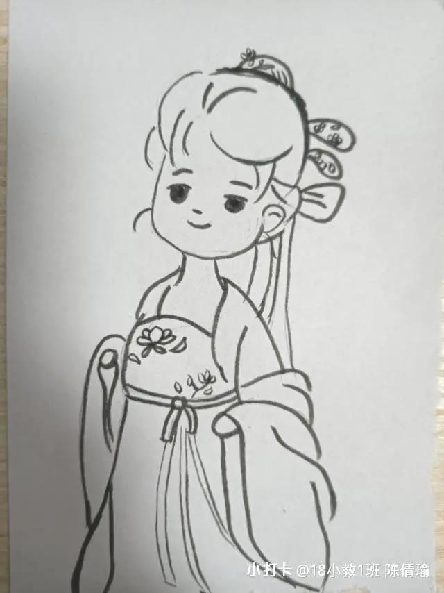 18小教1班的陈倩瑜选择的是简笔画打卡。在这21天过去后,她在简笔画方面取得了很大的进步,可以画出比以前更加生动可爱的卡通形象,绘画技术也越发熟练。