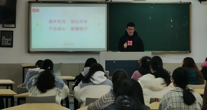 章鹏程介绍了本次系列活动的安排并寄语同学,希望每位学子能够站在时代前列,不忘历史,牢记使命,在积极参与学校相关庆祝活动的同时,发挥时代青年的创造性,主动组织并参与班级内部相关活动,在实践中深入了解党史,以革命前辈为榜样,努力提升自我。