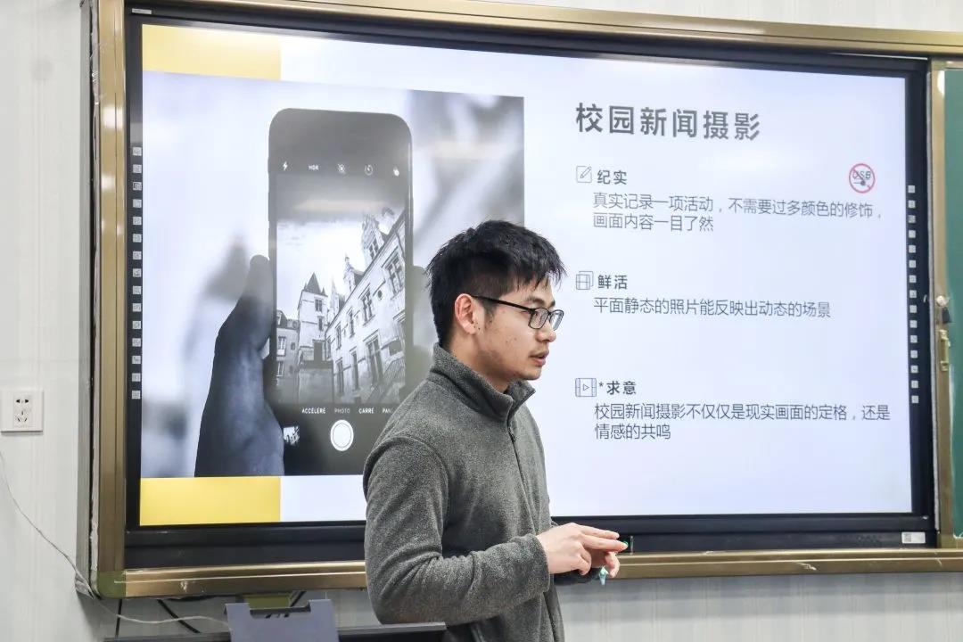 校园新闻摄影培训会于望D124举行。西方语言文化学院唐人街影院指导老师陈相伟从个人经历出发,就新闻摄影中的“实纪”“鲜活”和“求意”这三点进行着重介绍。从“全景”“过程”和“合影”的角度,他深度剖析了摄影记录新闻时的注意点。最后,他通过对摄影部近期所拍摄的新闻照片“问诊”,全方面地向大家介绍了拍摄的内容重点和新闻照片的构图。