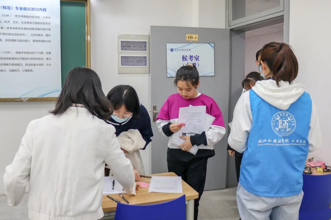 的同学们,他们审查资格、管理考务、引导考生、维持秩序、接待家长……他们积极忙碌,洋溢笑容,耐心地帮助考生,缓解考生紧张情绪,无言间流露着浙外和教院对考生们的欢迎和关怀。