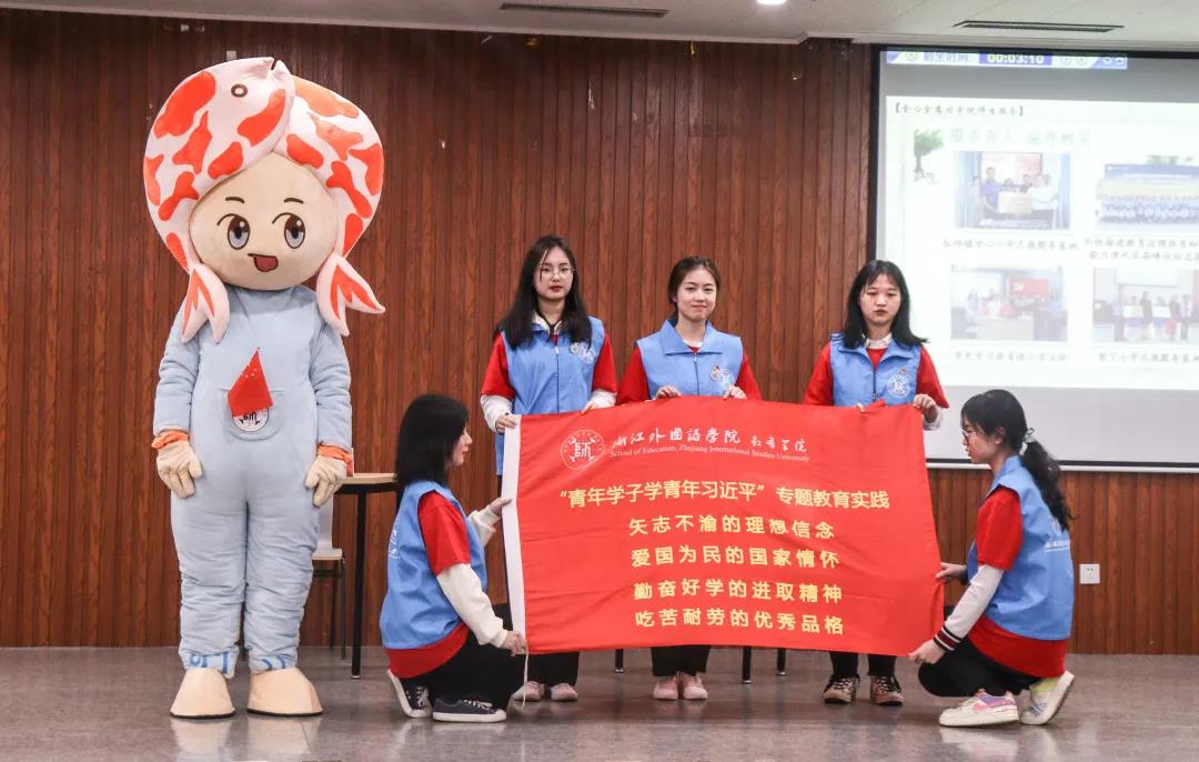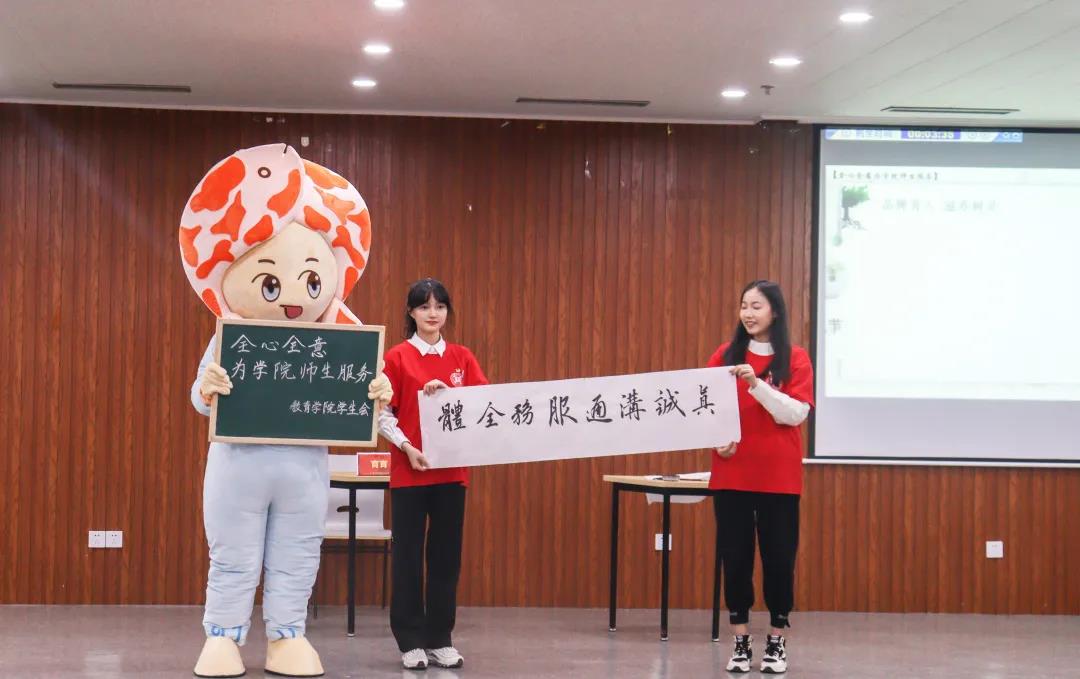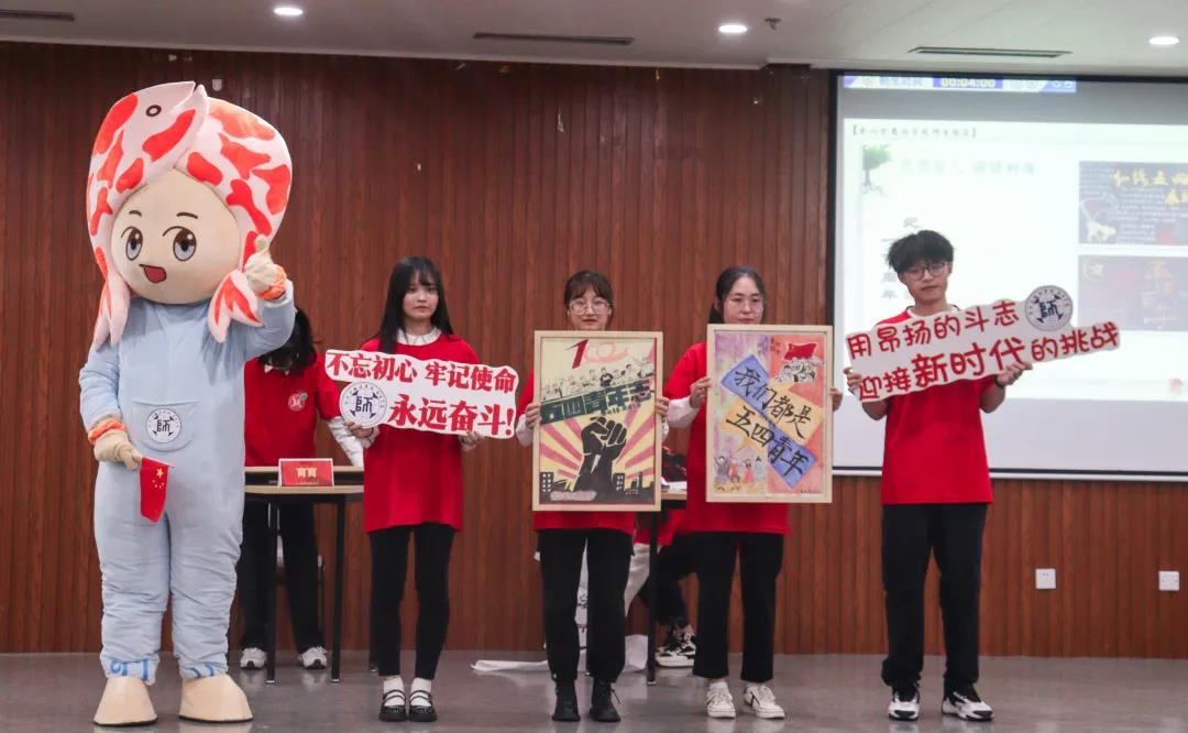 吉祥物“育育”同台,围绕主题模拟复现了教院学生会的工作实况,书写粉笔字、软笔字,复现教育文化节“三字一画”现场;身穿志愿服务马甲,模拟“拓展性课程”社会实践与志愿服务;展示五四手绘海报,表达青年理想情怀。