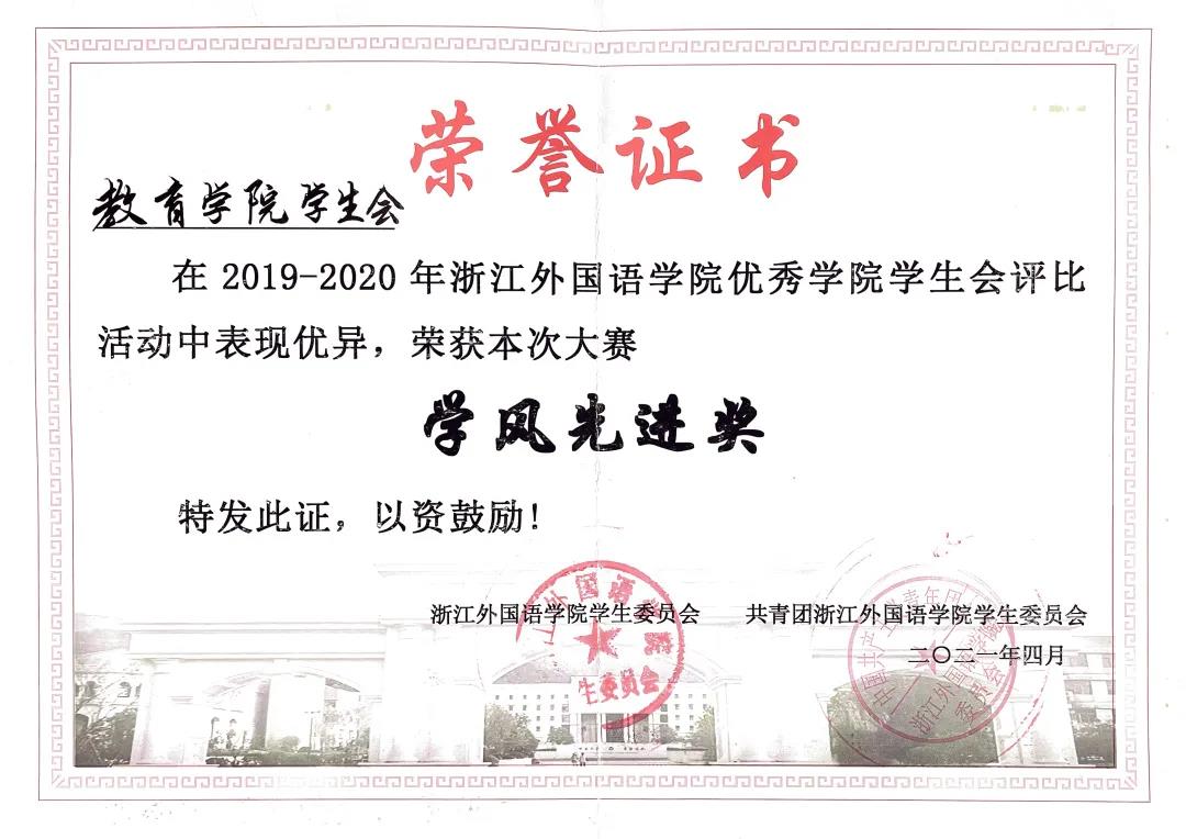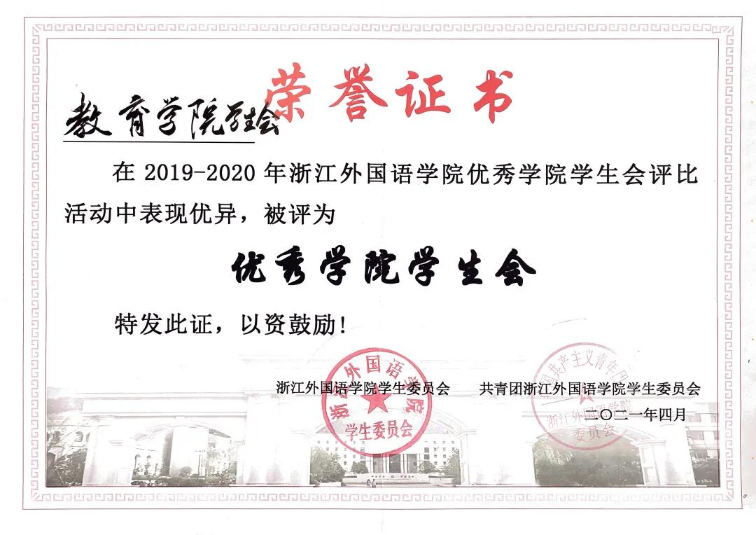 优秀学院学生会荣誉称号及“学风先进奖”。