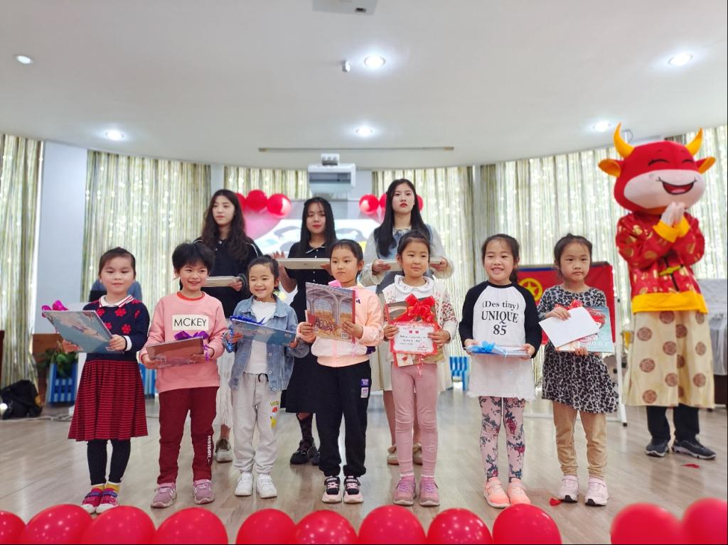师生们协助幼儿园教师共同策划颁奖典礼各个环节,在表彰获奖幼儿的同时,通过他们喜闻乐见的卡通形象与奖品图画书结合,激发孩子们的阅读热情。