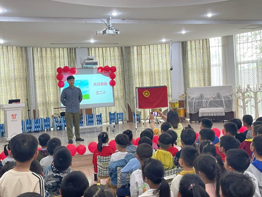 学生志愿者随后结合绘本用抗日英雄王二小的歌曲和故事给幼儿带去了一堂生动的红色课堂,孩子们通过对比感受到了今日幸福生活的来之不易。