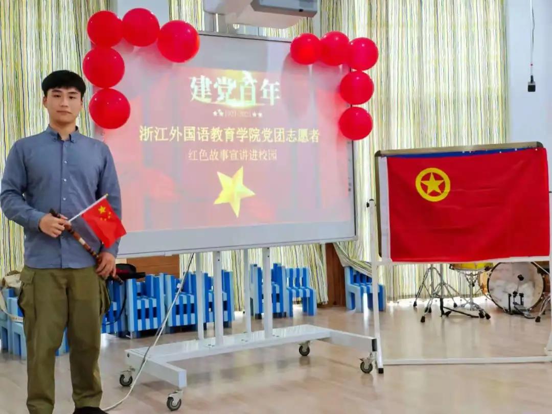 合作共建了党团志愿服务基地,在建党100周年之际,我们班级协助幼儿园本着红色故事润童心的初衷,在4月22日举行了第五届读书节活动的颁奖典礼,我们班的志愿者为孩子们颁奖并送上建党百年红色故事,与孩子们一同探索小英雄的故事,体验“大我”牺牲“小我”的英勇情怀!