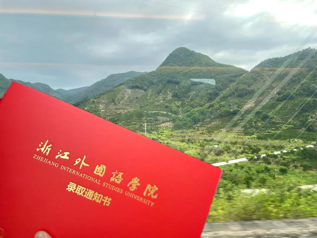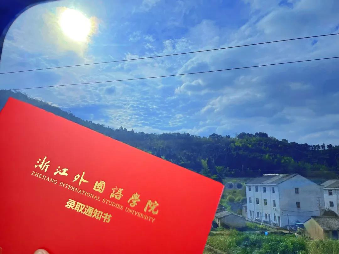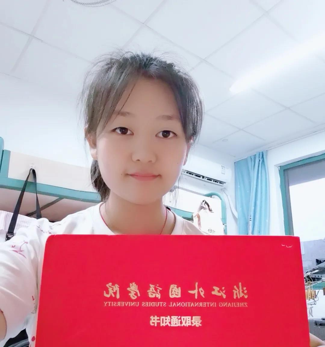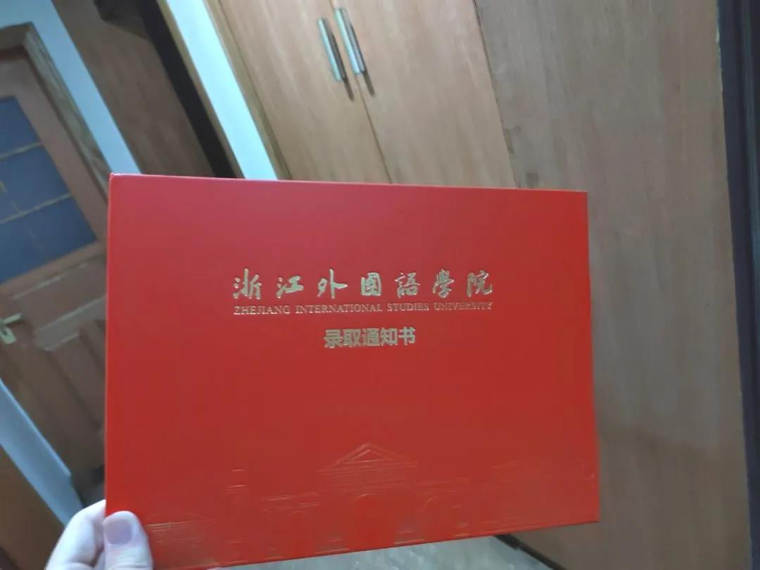 7月,当我家门铃响起,打开大门的时候,红色包装的录取通知书迎面而来——它是我在盛夏收到的最美好的礼物!十年寒窗,终相聚浙外,开启美好的大学之旅。