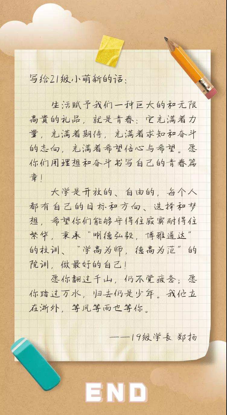 美丽的名字终于也出现在了心仪的录取通知书上,想要成为一个优秀的老师,也成就一个更好的自己,我在浙外走的路,一定会繁花盛开,人声鼎沸,前路浩浩荡荡,万事尽可期待。
