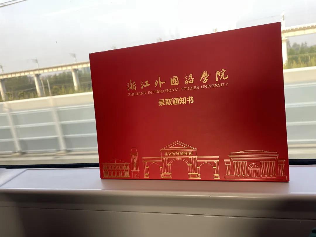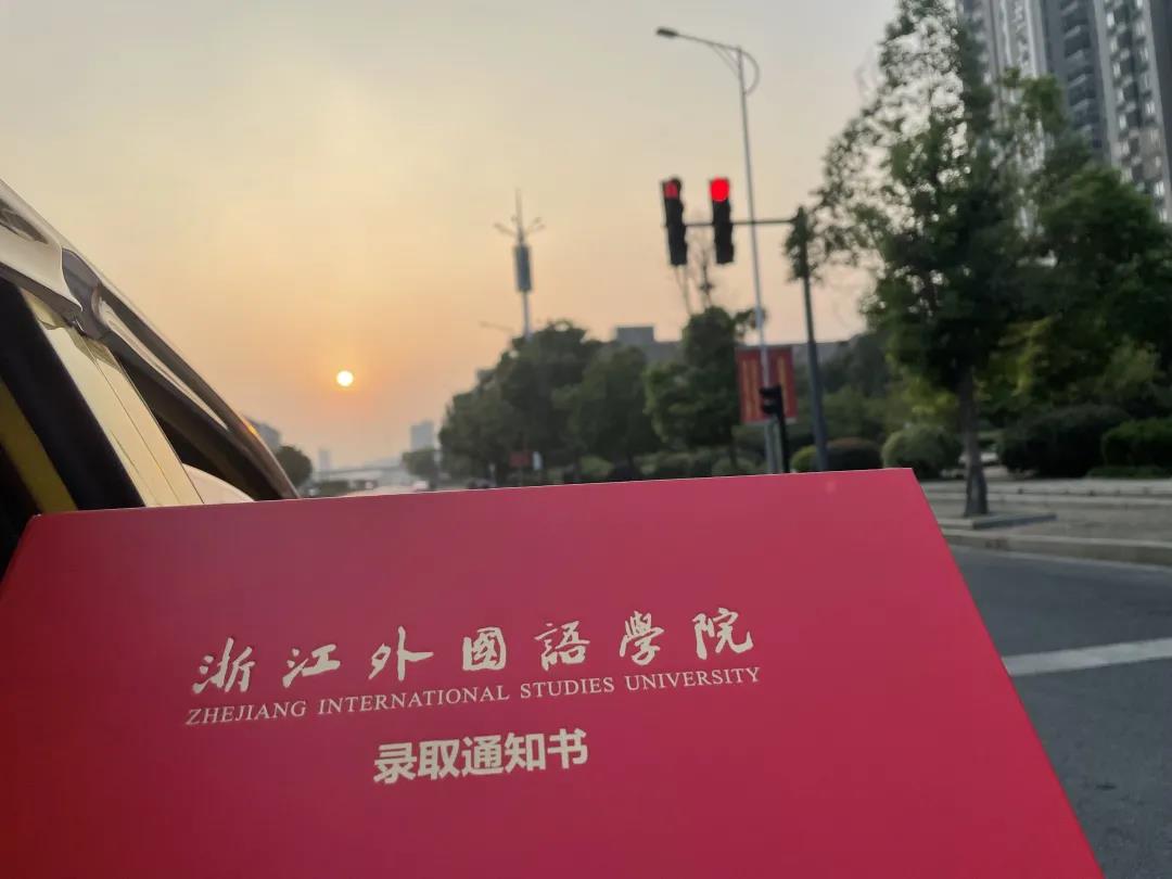 哈喽,大家好!我是一份象征着美好未来的录取通知书。此刻,主人已经带着我踏上了奔向浙外的康庄大道!