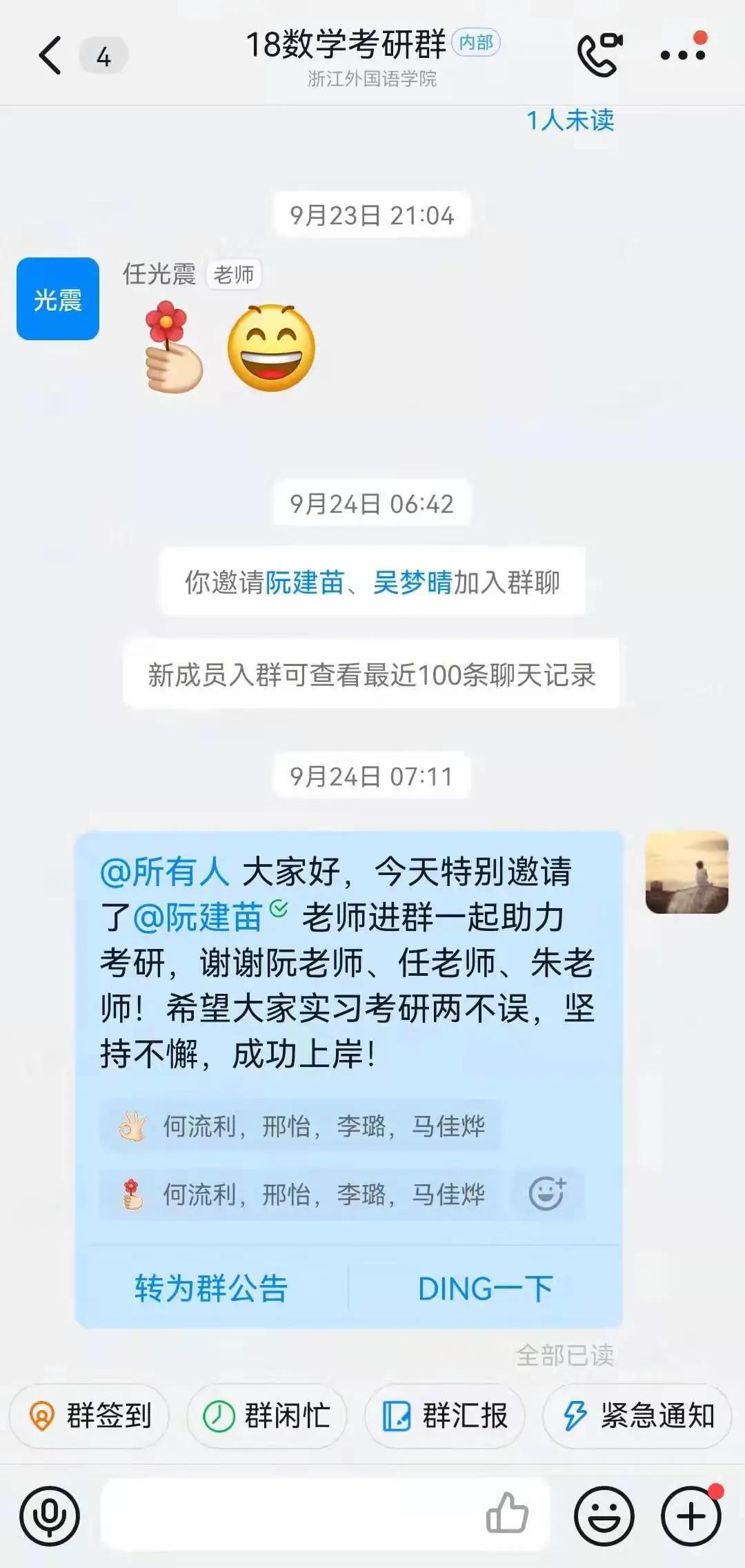 一直以来持续关注考研学子动态,对学生考研意向进行摸排,建立考研钉钉群持续为同学们加油鼓劲;数学系教师为考生提供专业辅导,暑期为全校学生开设高数考研辅导课程,并邀请专业老师进钉钉群为同学们做考研指导和专业课答疑、分享考研信息;征集各专业老师、学生、上岸学姐、后勤保障人员等的祝福,制作推文、原创视频等新媒体作品,为学子送上真挚祝福。