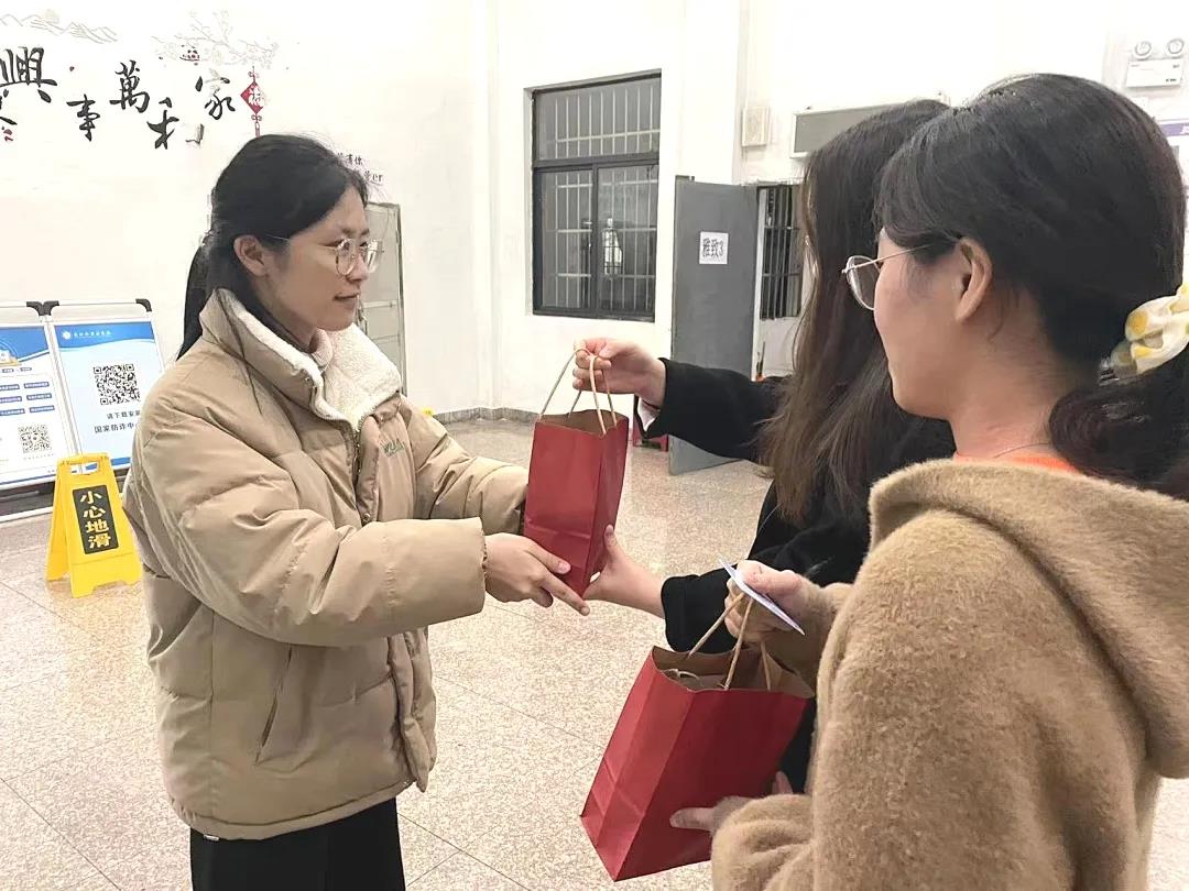 考前,学院志愿者们将慰问礼包逐一送至图书馆、送到寝室楼,将关怀关心送到考研学子心里。