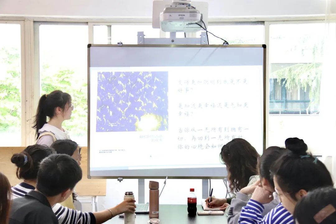祁小荣老师引导大家以包容的态度面对死亡,举例引申了社会上各种的状态。她认为每个人安于自身,不去影响他人或许也是一种包容性。在生活中,我们会遇到形形色色的人,看见人与人之间的不同处,尊重这些不同而不必过分苛责。此外,老师还对大家的分享方式提出了很多改进意见,建议介绍作者在写这本书的背景故事,展现明晰的故事线并阐释相关细节。老师还指出,此次分享的第一本书是在考验人性,在纷扰的世界里更应该坚持自身,不让他人的思想完全填充自己的脑海,不让自己的思想成为别人法的跑马场。三本书在一定意义上实则有相同之处,都教会了读者在这一浮躁的社会中如何自处,如何捍卫自身的道德底线,不让社会消耗自己。