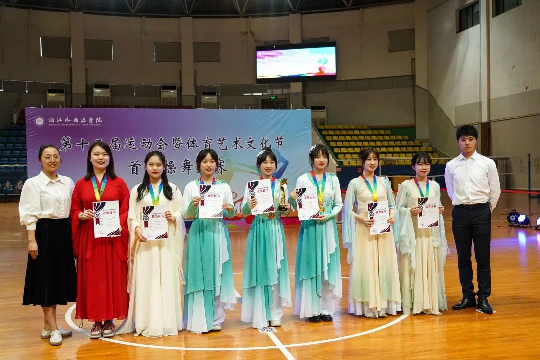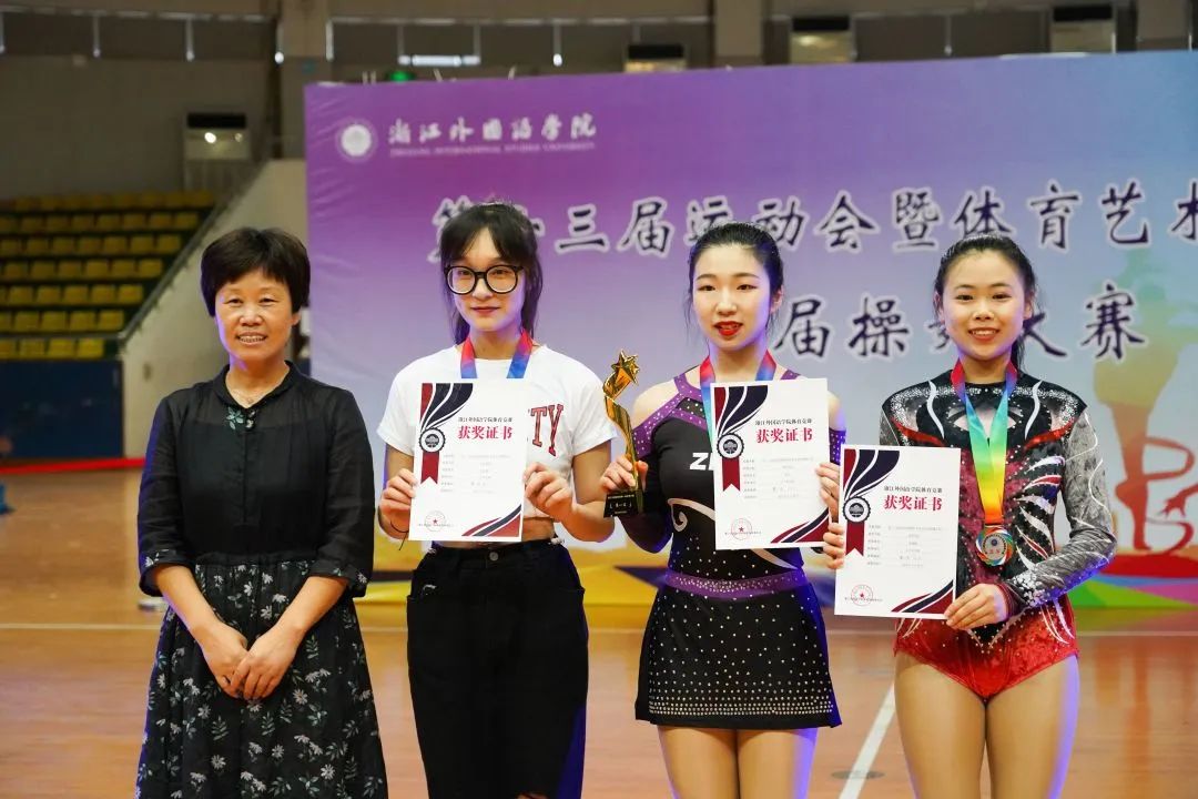 各项目代表队学生精细筹备,刻苦训练,在互相激励中逐渐团结,在追寻完美中不断成长,把对操舞的热爱和青春的活力融入到优美的舞姿中,给在场评委们和屏幕前的观众们带来了一场场视觉盛宴。经过三个半小时的激烈比拼,40余名学生在7个项目中获得佳绩。