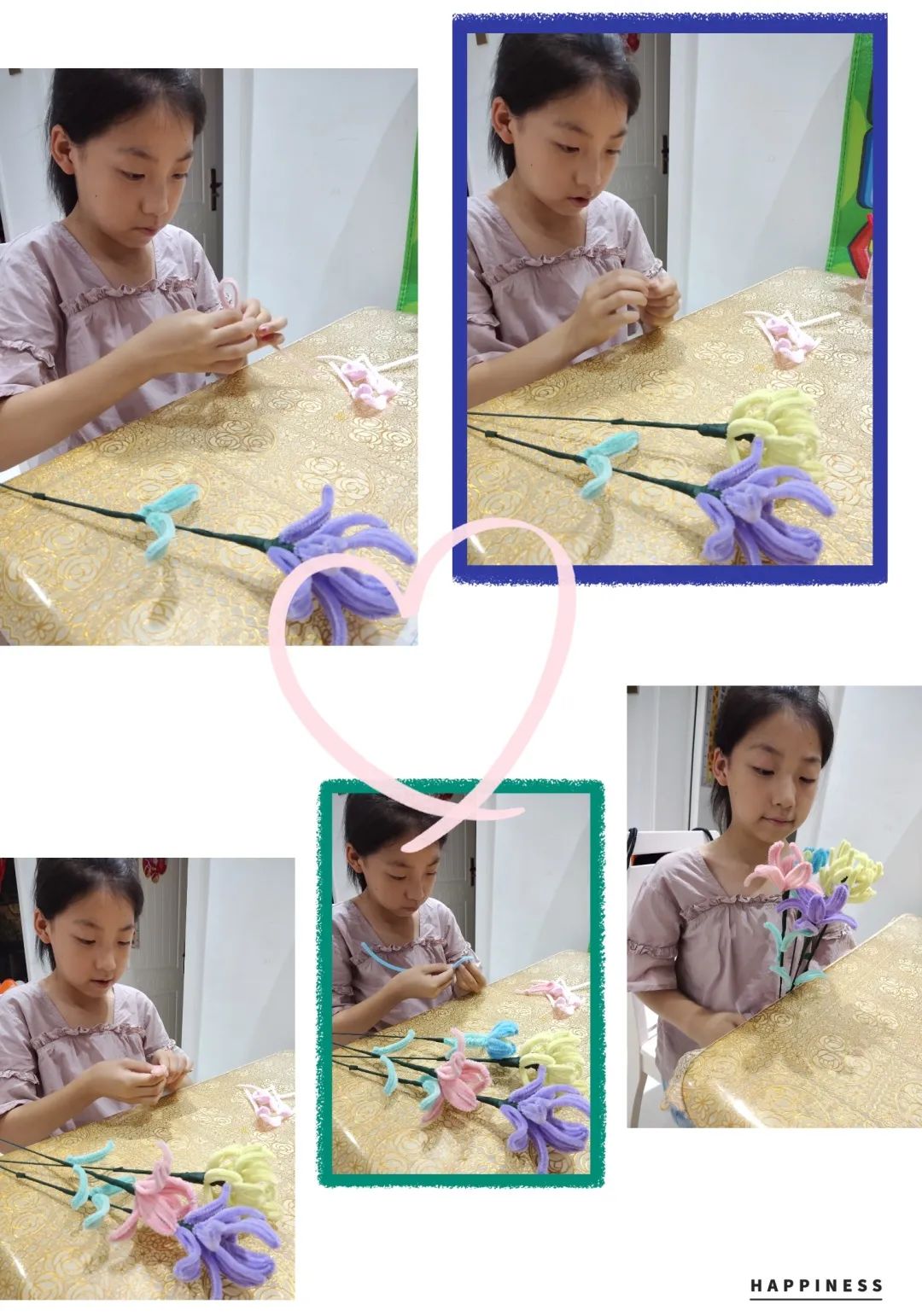 “感谢浙外的老师们给我们带来这么多精彩有趣的课程。在这次的微课中,我绘制了一面‘意义非凡的扇子’送给亲爱的党和祖国,利用扭扭棒制作鲜花为二十大献礼,同时也学会了不同的扎染技术,认识到了中华民族传统工艺的博大精深……我要把学到的内容和其他的同学一起分享!”一位“红领巾”激动地说,其余的小朋友和家长们也连连附和。
