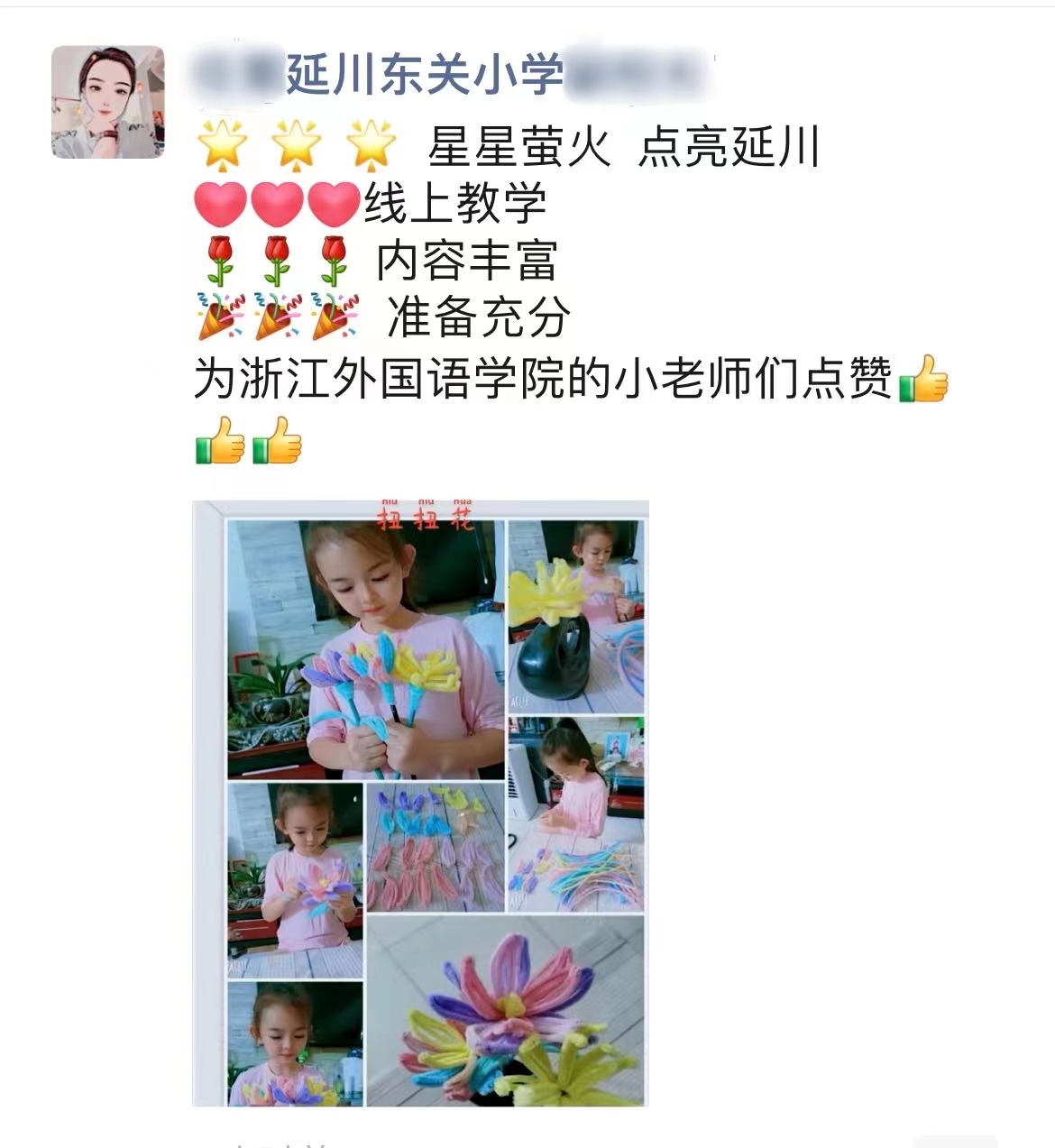 线上授课虽已落下帷幕,但教院青年学子与延川“红领巾”们的联系没有就此隔断。浙外身处杭州,作为中国东部的教育先行区域,吾辈青年学子也想将教育的智慧和光芒带到更多的乡村小学,带入小学生课堂,实现东西部地区的资源互通。实践团队将教育致富的种子播撒进“红领巾”的心中,队员们也将继续坚定自己的理想信念不动摇,深入贯彻学习青年习近平的优秀品格。新时代青年与“红领巾”的携手之旅仍未完待续!