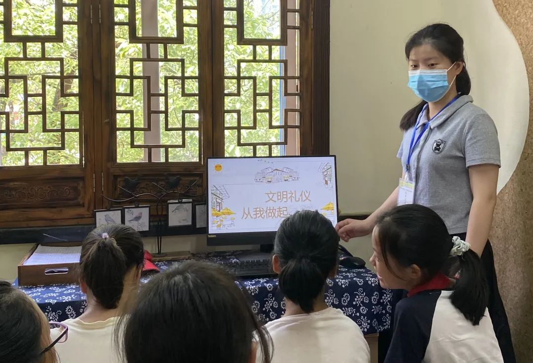 此外,实践队员通过观摩越剧选段、模仿越剧唱腔等教学环节,向学生介绍相关越剧知识,亲身感受戏曲演绎过程、传承非遗文化;实践成员教学生朗诵、舞蹈、礼仪、心理、性教育、安全教育等课程,助力“双减”落实。丰富的非学科特色课程,不仅让小学生拓展多面知识,更绽放其青春活力。活动结束后,小队成员就课程内容采访学生的学习感想,对开设课程做出总结与思考。