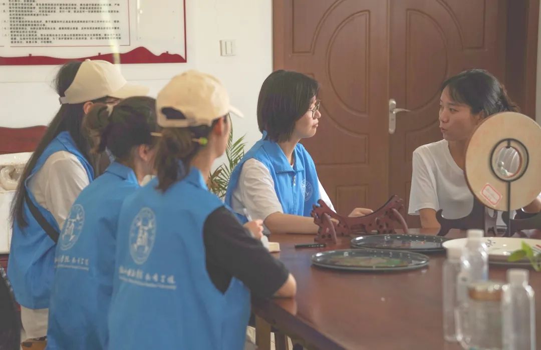 实践团队到达南山村村委会,在实地考察的基础上,与当地村委就“文化融合”“群众意见”等问题进行了融洽交流。村委代表对借助南山摩崖石刻的初步实践方案表示肯定,并传达了对打造南山特色文创品牌和设计独特IP形象的迫切需求。