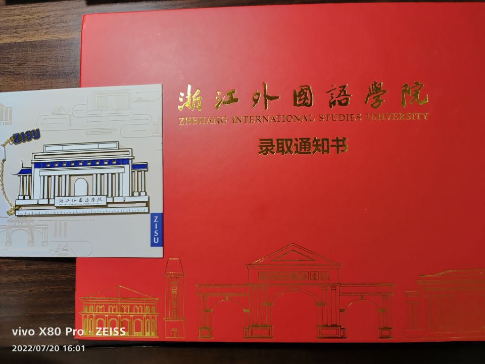 的初心,想到了心底那颗“为人师”的种子。揣着坚定不移的梦想,我鼓励自己做好心理建设,放平心态、从容应对。临近高考时,浙外学姐的亲笔信与一枚金属书签更坚定了我报考唐人街影院
