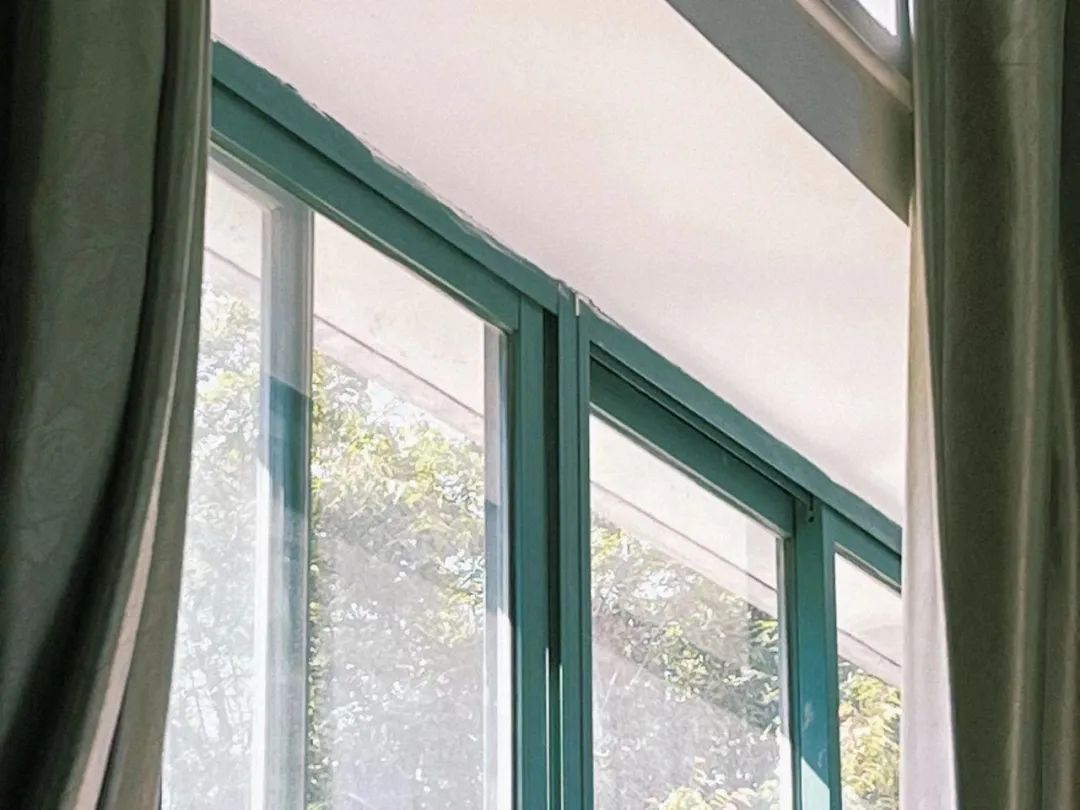 “ 绿窗棂映照白墙”