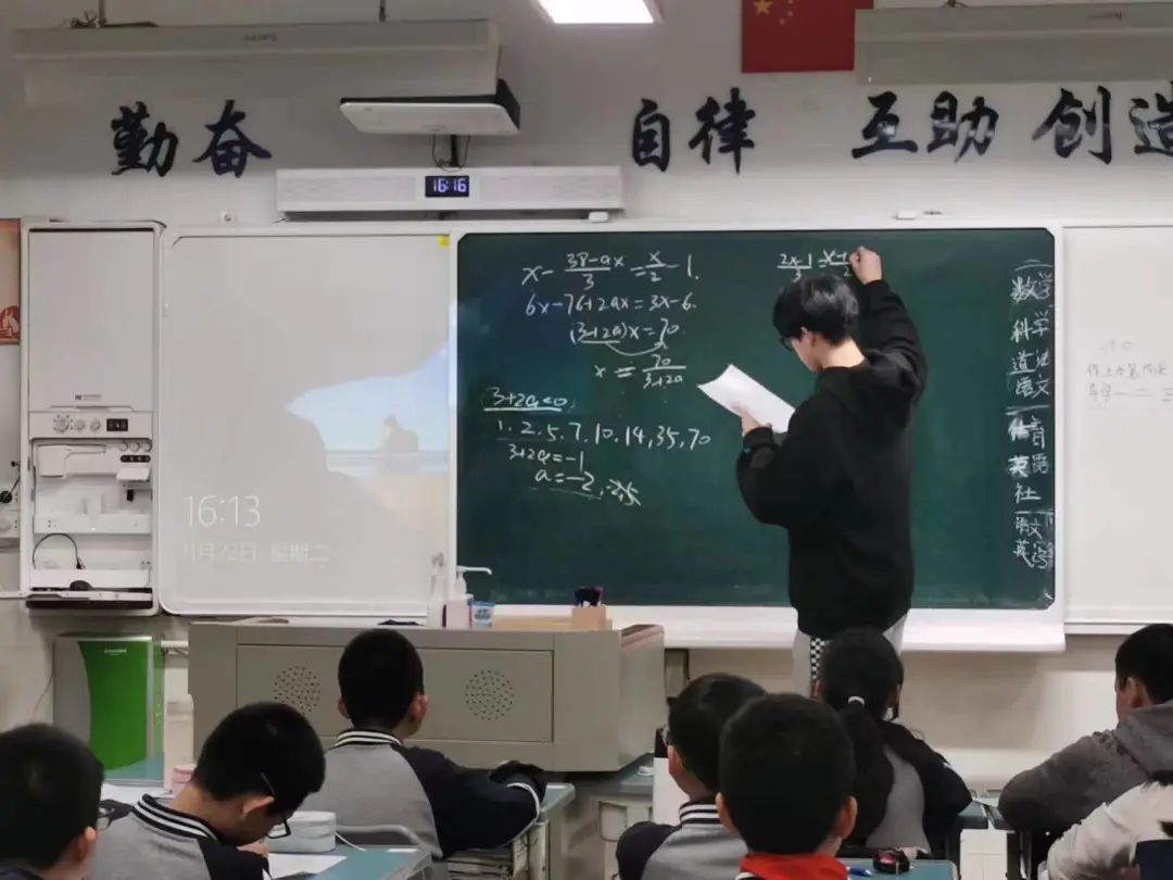 前往杭州市第十五中学的20数学1班季泽阳着眼课堂前后的教学工作,深入学习指导老师的课前备课、课上教学以及课后批阅,对自身提出了“把板书写干净,让教态亲切自然”的要求。21数学1班吴子悦也收获了在课堂上应对突发情况、把握教学进度、兼顾全班教学等重要实践经验,切实感受了学生作业对教学深度、广度的真实映射。