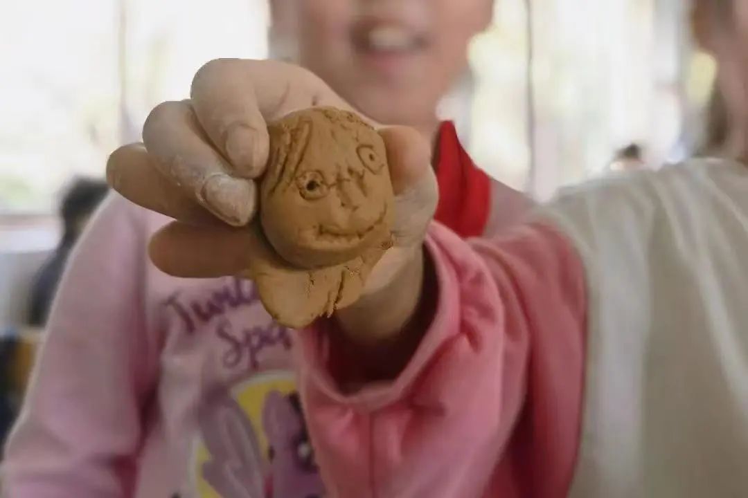 小朋友热情制作见习生泥像