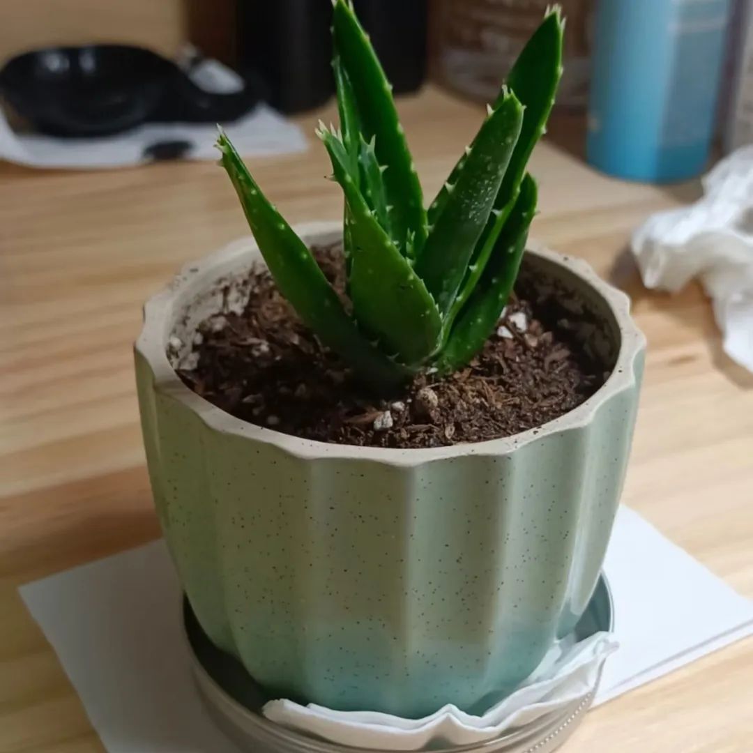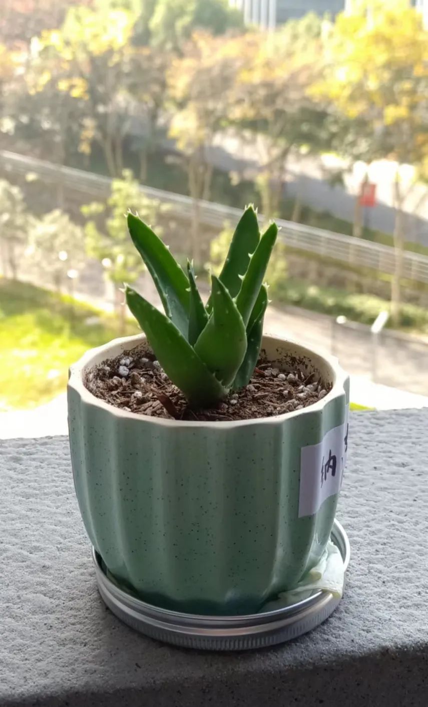 已经过去半个月啦,在经历了降温、下雪、大风等天气的挑战后,芦荟终究是坚强地活了下来。这几天终于有太阳了,还是多晒晒太阳吧,毕竟多晒太阳会长高嘛。