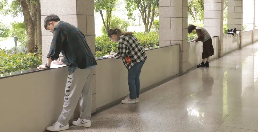 抽取了各自的课题之后,教院学子在备考教室积极地进行准备,他们神情严肃认真,仔细地研究手中的材料,思考如何进行课堂设计。走廊上候场的考生抓紧时间做着最后的冲刺,他们调整好心态,以饱满的精神状态迎接将面临的挑战。