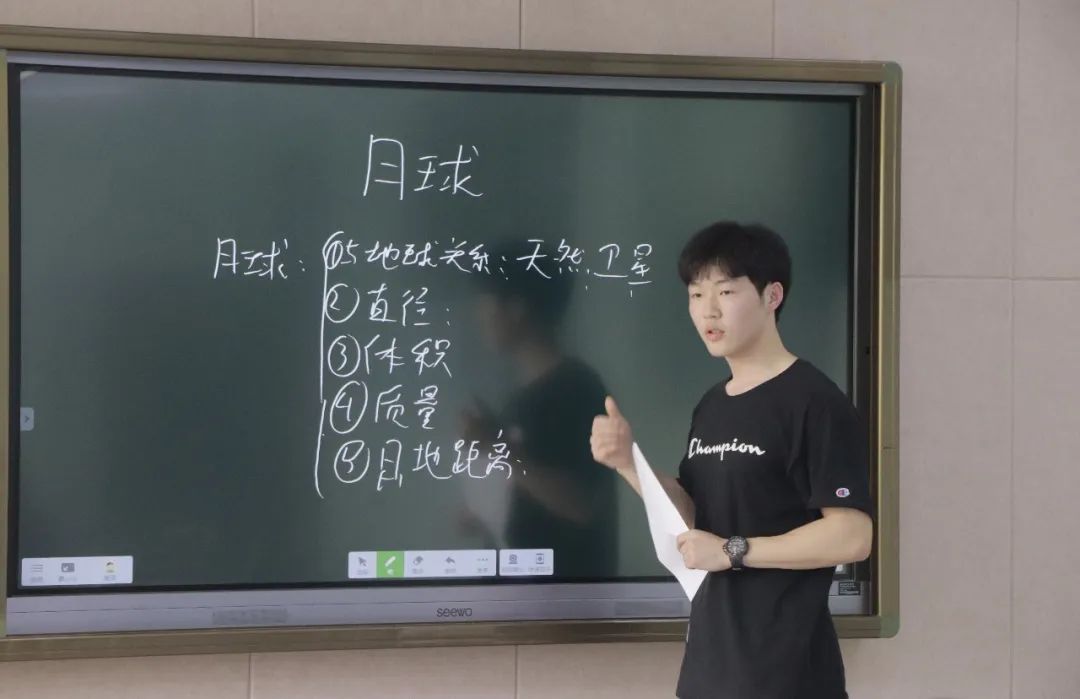 科学是一门具有重探索、重发现、重思考内核的学科,科学教师不仅要做好知识的传输,更要对学生探索精神、创新精神进行塑造与培养,这对教师的课程设计、上课逻辑提出了一定要求。20科教1班的王博韬以风趣幽默的语言,打造了一节轻松的科学课堂。走出考场后,王博韬坦言:“这是我第一次在比较正式的场合进行试讲,难免会有些紧张,但当我站上讲台时,一心想着如何把课讲好,心情自然就平静了下来。师范技能人人过关给我提供了一个很好的学习平台,评委老师提出的宝贵建议对我的职业技能提升有着很大的帮助。”