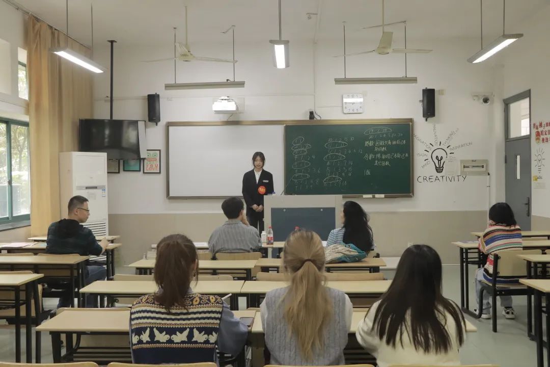 作为一门基础学科,数学的深奥、抽象让不少学生望而却步,新时代数学教师们应由浅入深地展开教学,让数学回归生活实际,打破学生们“数学又难又无聊”的刻板印象。20数学1班的陈栋栋结合所学教育知识,顺利完成此次过关检测,得到了指导老师的认可与赞赏。陈栋栋事后表示:“虽然备考十分匆忙,但是抽到的这个课题之前恰好准备过,因此发挥得比较稳定。通过这次面试,我也发现了自身的一些不足,例如板书结构不太合理,例题设计有所欠缺等,将会更有针对性地去完善。”