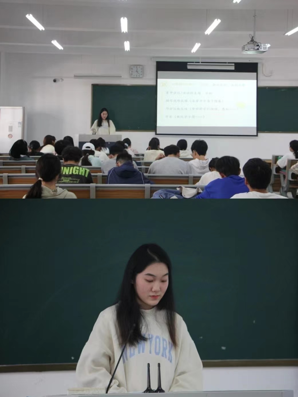 采编部负责人杨紫灵阐述了校园新闻特点、新闻稿写作技巧、撰写注意事项三部分内容,结合段落框架帮助成员掌握撰写客观真实、具备时效性的新闻稿技巧。
