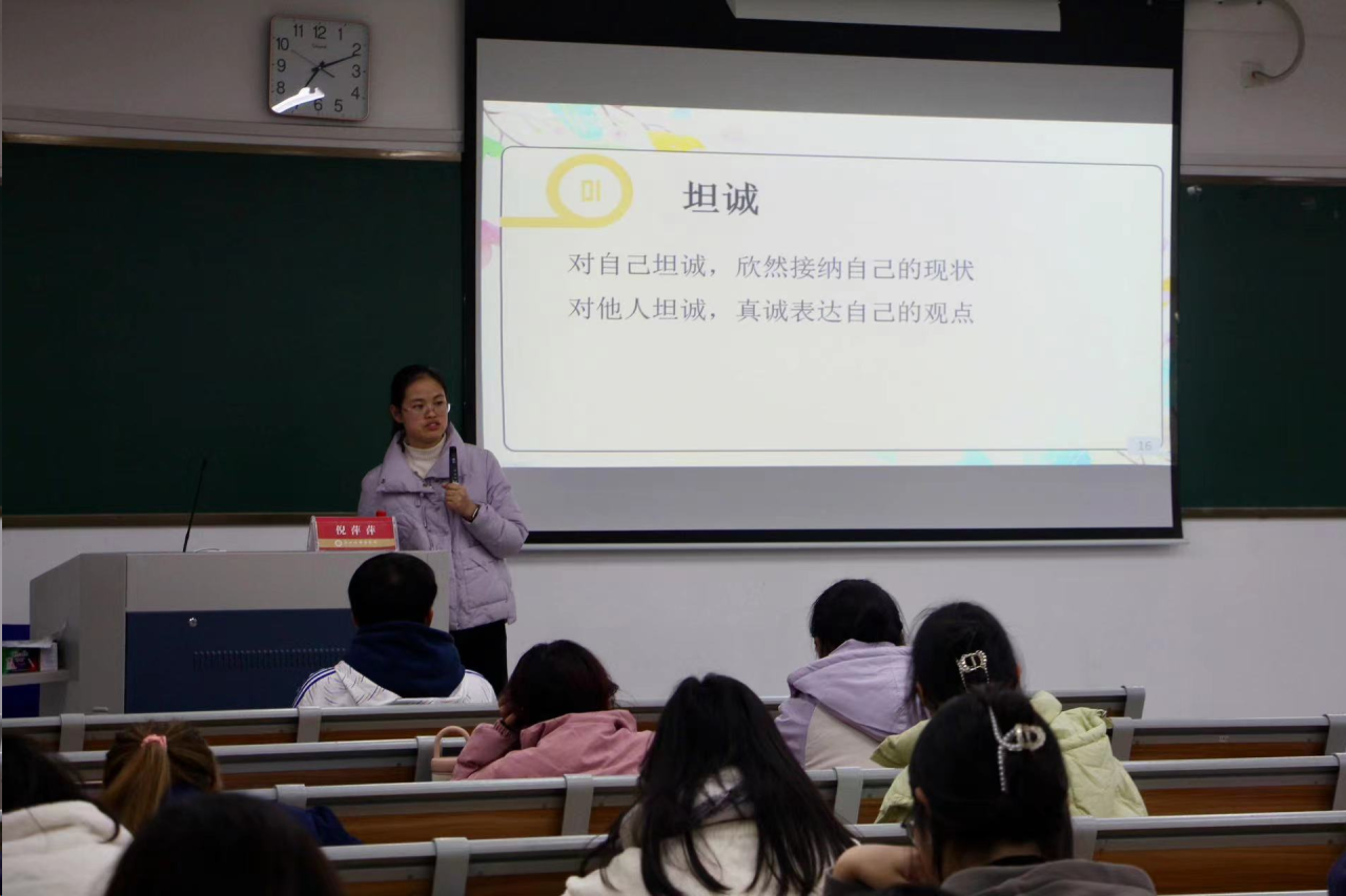 最后,倪老师鼓励在场的每一位同学用热情、乐观和积极的态度去处理宿舍、班级以及校园中的人际关系,给予彼此朋辈间的关怀与温暖。讲座内容贴近生活,既普及了心理健康方面的相关知识,又点明了心理健康教育的重要性,为同学们的心理健康保驾护航。