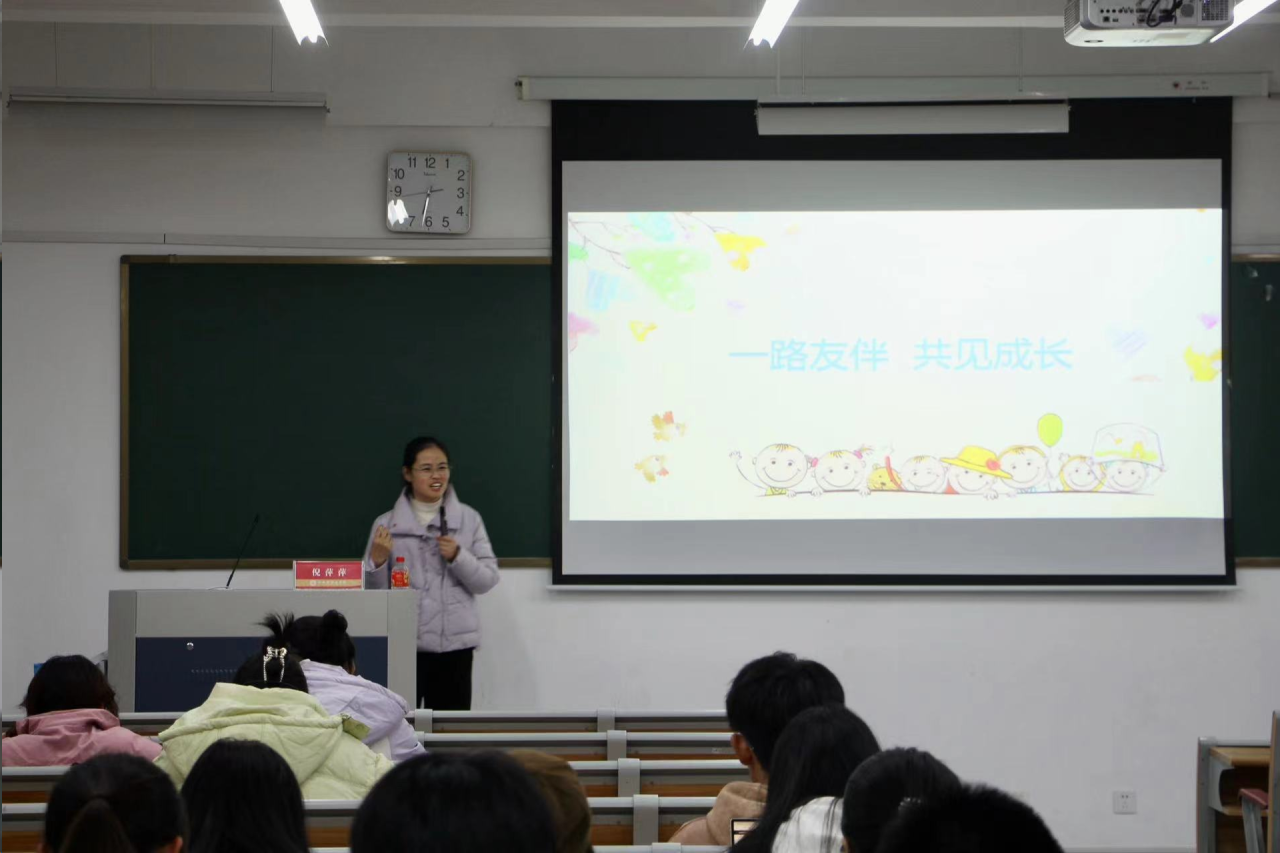 心理学系教师倪萍萍主讲的“一路友伴,共见成长”朋辈心理培训主题讲座在融B207举行。此次讲座于线上线下同步进行,全体心理骨干成员踊跃参加,百余名师生线上聆听。