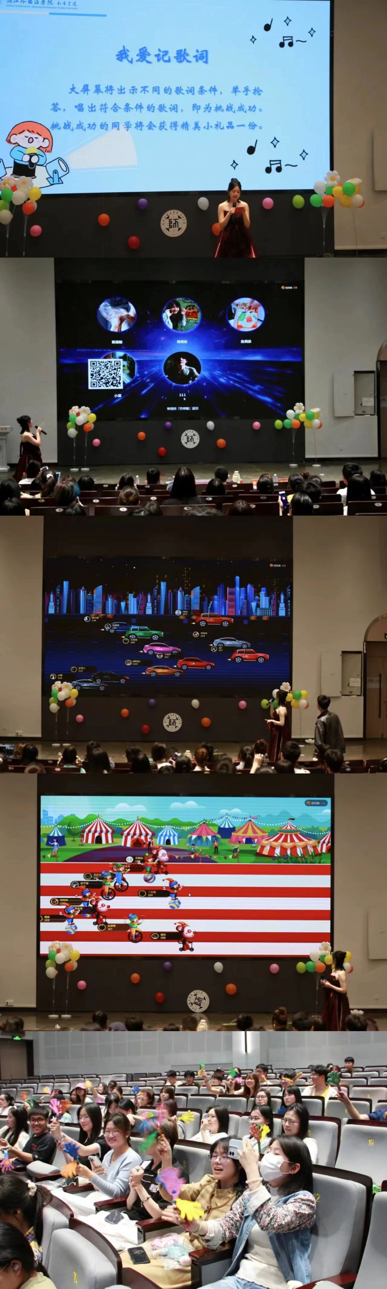 在三轮比赛间隙,还有“我爱记歌词”“歌曲猜猜猜”等小游戏和激动人心的“幸运观众抽奖”环节。现场观众积极参与,欢声雷动,热火朝天。