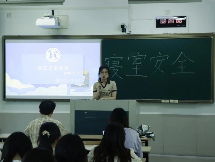 于2024年5月17日中午召开“寝室安全培训”宣讲会。各班班长、生活委员代表参会。