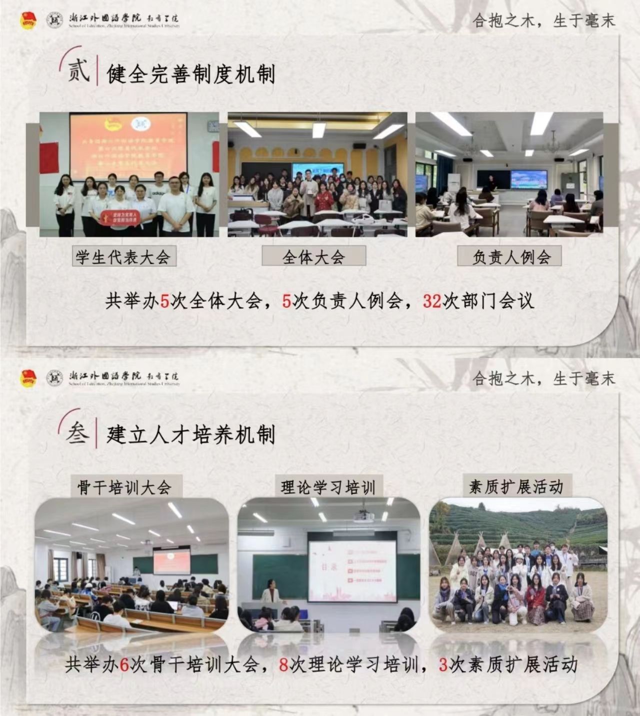 学生会积极将学院十大志愿服务基地打造成青年学子专业成长和思想政治教育的新阵地。在杭州亚运会、亚残运会、良渚论坛等大型志愿活动中也都有教院学子的身影。