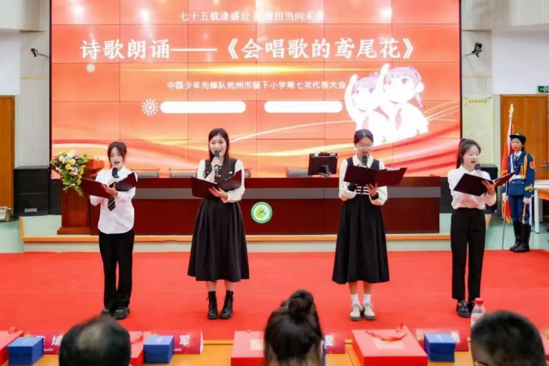 活动中,我院校外辅导员倾情朗诵《会唱歌的鸢尾花》,辅导员老师娓娓动听的朗诵也激励着少先队员们在成长路上自强不息,扶摇而上。