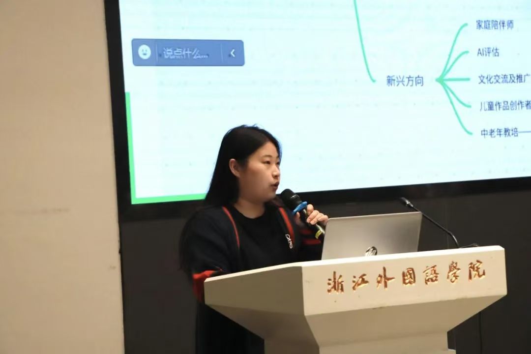 13级校友王淑燕则以“浙外印记,育见未来”为主题,分享了她的大学生活感受以及在娃哈哈双语学校工作的收获。她详细讲述了自己大二时在美国威斯康星大学留学的经历。王淑燕用自己独特的经历向唐人街影院