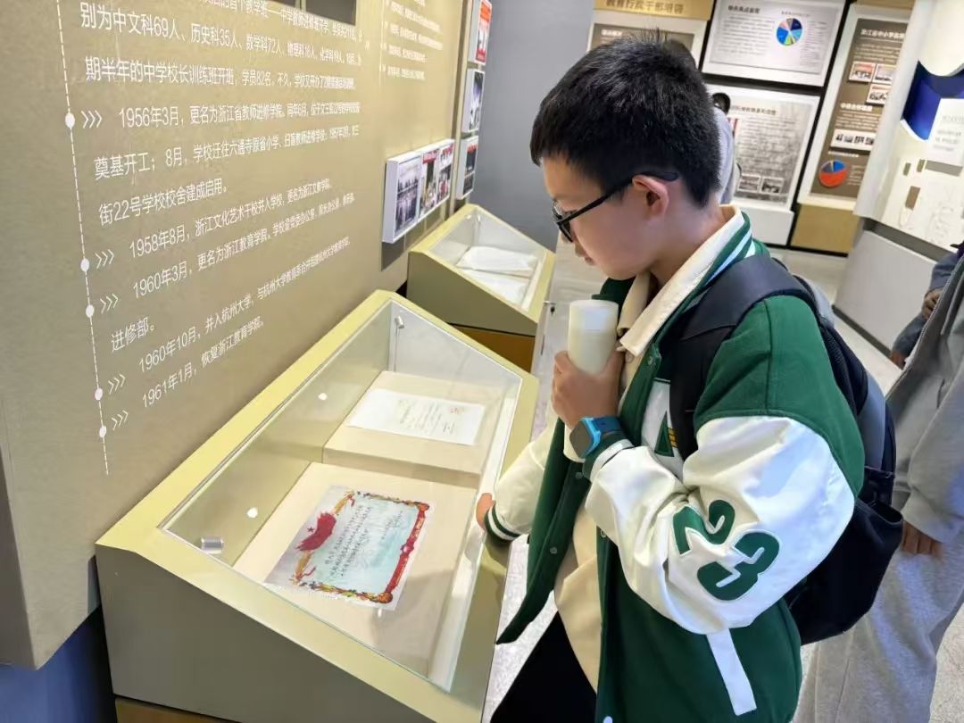 迈进校史馆,历史的韵味扑面而来。那些陈旧的照片、珍贵的文物以及详实的史料,似一幅幅鲜活的画卷,缓缓呈现出学校一路走来的沧桑与辉煌。在这里,我深切感受到学校深厚的文化底蕴。从建校初期的艰难摸索,到逐步站稳脚跟,再到如今的蓬勃发展,学校始终坚守着独特的教育理念和价值观。走出校史馆,我心里满是感慨和自豪。让我们带着对校史的深刻感悟,在新时代的征程中,与学校携手共进,共同书写学校更加灿烂的明天。