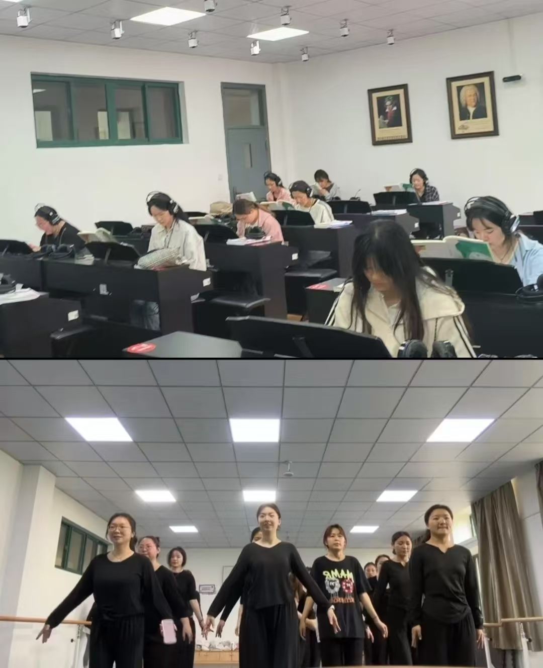 在实践周的后半程,23学前1班的同学们将学习重心转向专业技能的系统提升。在指导老师屠晓青老师的组织下,同学们开展了分模块、阶梯式的技能训练,大家在舞蹈实训室自主进行幼儿舞蹈创编、在钢琴室开展基础训练、在绘画室进行绘本创作。