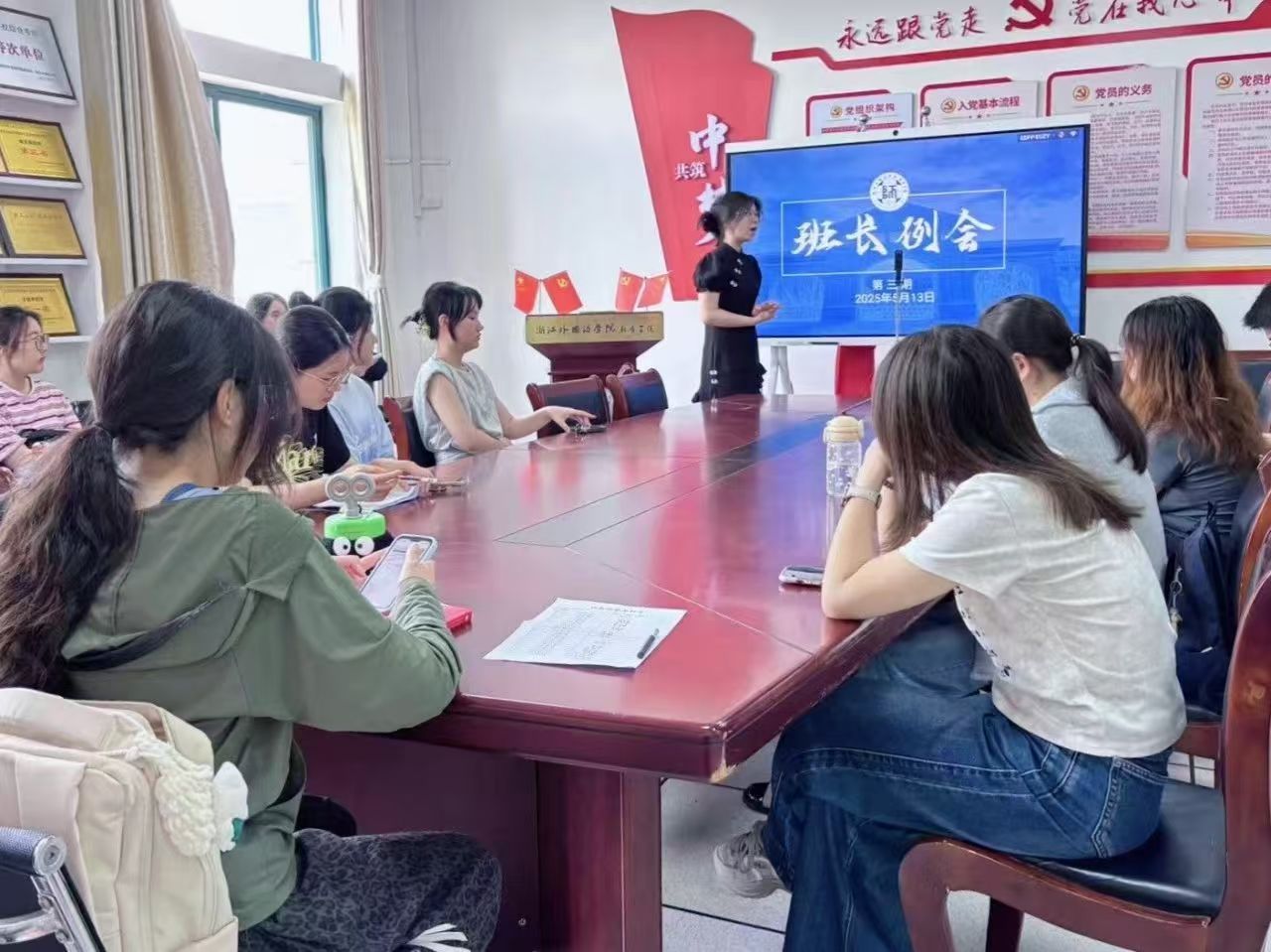 与此同时,为确保各班落实每月工作安排,强化班级建设,我院每月开展班长例会,五月班长例会内容如下: