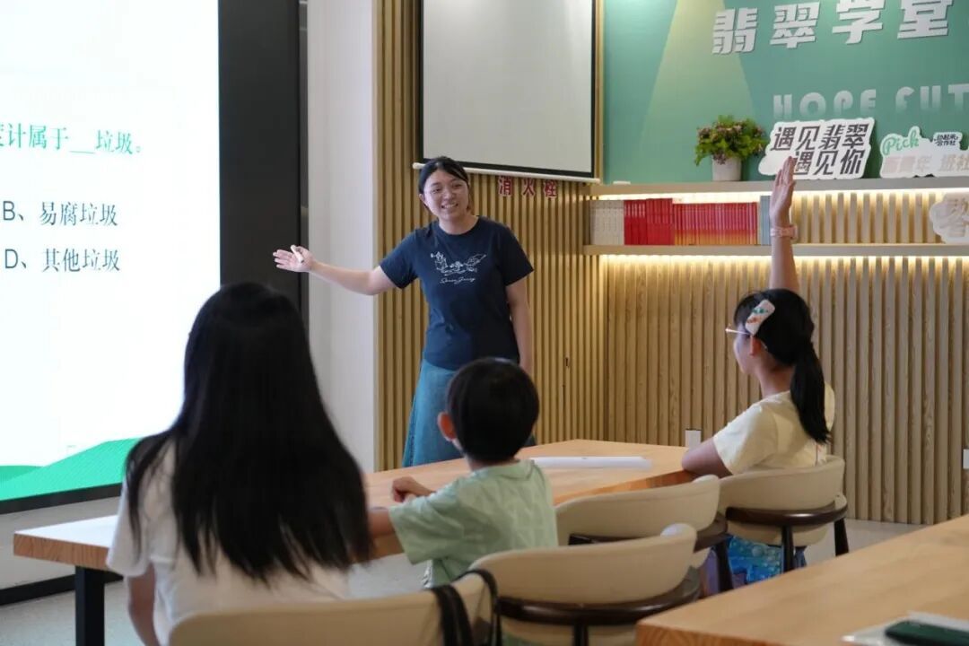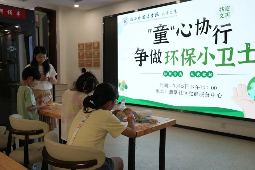 7 月 13 日下午,“童趣盎然·友好翡翠”实践团前往余杭翡翠社区党群服务中心开展实践活动,以儿童环保教育为切入点,为社区儿童量身定制了一系列丰富多彩且富有教育意义的活动,致力于推动翡翠社区儿童友好型社区的建设,最终形成 “家校社” 协同的生态教育闭环,为翡翠社区打造具有辨识度的儿童环保教育品牌贡献青春力量。
