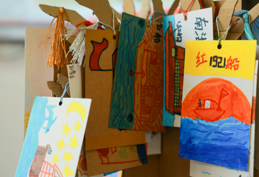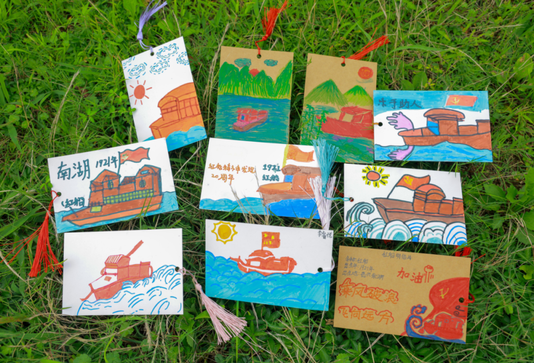 “如何让红色文化变得可感可及?”团队创新教学形式,将党史学习与艺术表达相结合,从南湖红船的橹声到中共一大旧址的灯火,从“为人民谋幸福”的初心到百年征程的壮阔,在带领孩子们制作书画明信片的过程中,红色经典不再遥远,信仰也悄然间在孩子们心中扎根。