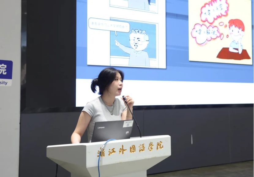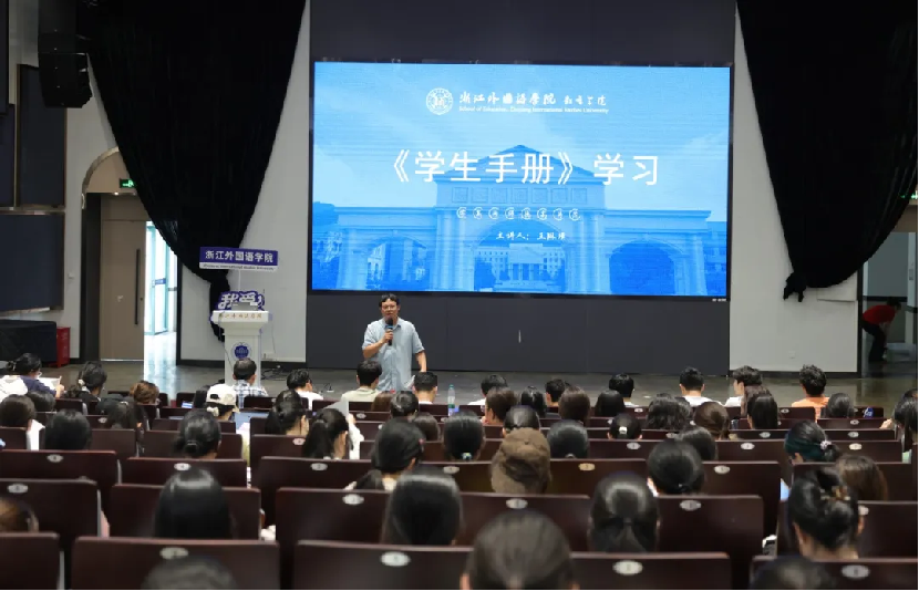 俞贝老师通过案例解析诚信考试、宿舍安全、校园法规等细则,重点警示违章电器等危害,强调“安全是万事第一要义,明确校园生活的安全红线”,希望新生能将手册规则转化为日常行动,做“守法守规的文明教院人”。同时她希望新生能明确未来目标,大胆往前走,创造属于自己的精彩大学生活。