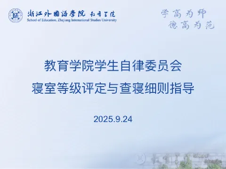 于9月24日在望D407召开寝室安全会议,全体生活委员和新生寝室长参加。院自律指导老师俞贝围绕学风建设、寝室管理等核心内容展开,为新学期校园秩序规范与和谐寝室环境构建明确方向。