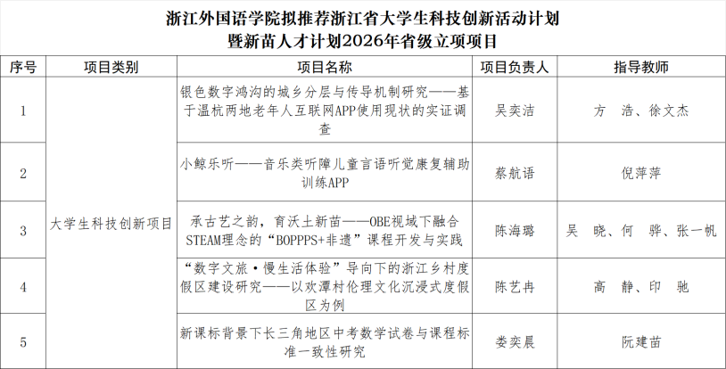 2026年拟推荐浙江省大学生科技创新活动计划暨新苗人才计划项目名单正式公布。唐人街影院