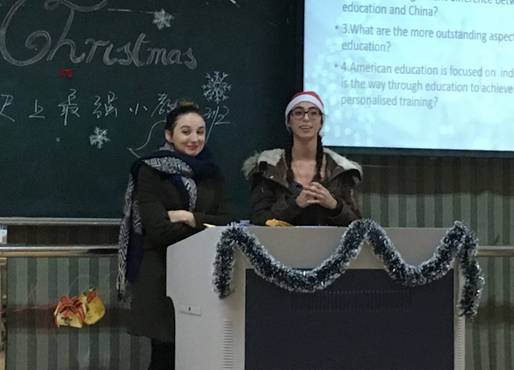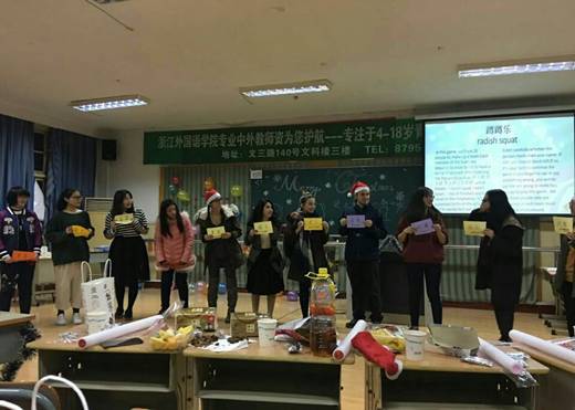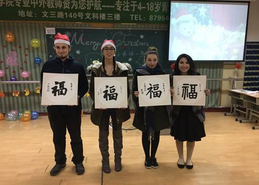 国际化应用人才培养实验班于12月25日在文三路校区文科楼顺利举行ZISU&UWRF中外交流活动。班主任陈伟伟老师,外教老师Jeff McNeal、SaidaMamadjonova、Brooke Paynter、Diamond Rypka 14级三位曾赴威斯康星大学河瀑校区学习的学长学姐以及16届小学教育4班(国际化应用人才培养实验班)全体同学参加此次活动。