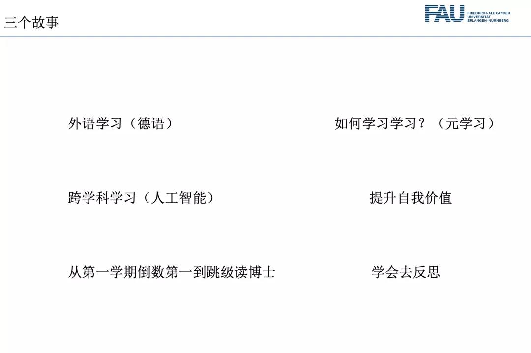 第二位分享者是被德国埃尔朗根-纽伦堡大学录取为博士生的2018届小学教育(小学数学方向)毕业生章成铭同学。章成铭介绍了自己从浙外毕业后多样化的学习经历,他讲述了自己的三个故事:外语学习、跨学科学习(人工智能)、从第一学期成绩落后到跳级读博士的逆袭。这些经历让同学们感受到坚持、勤奋、探索带来的无穷力量。